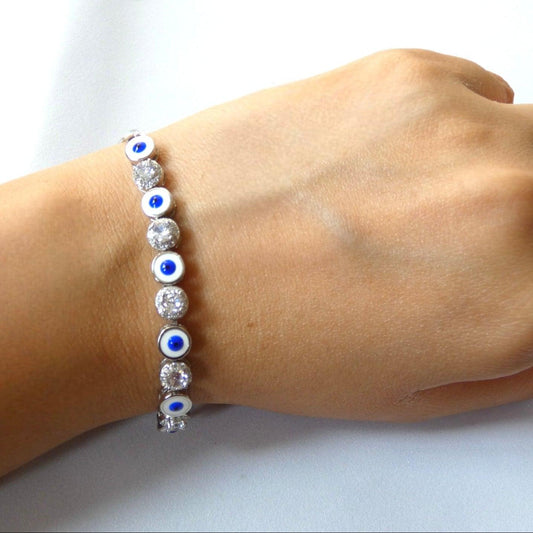 Evil Eye Charm 925 Sterling Silver Bracelet