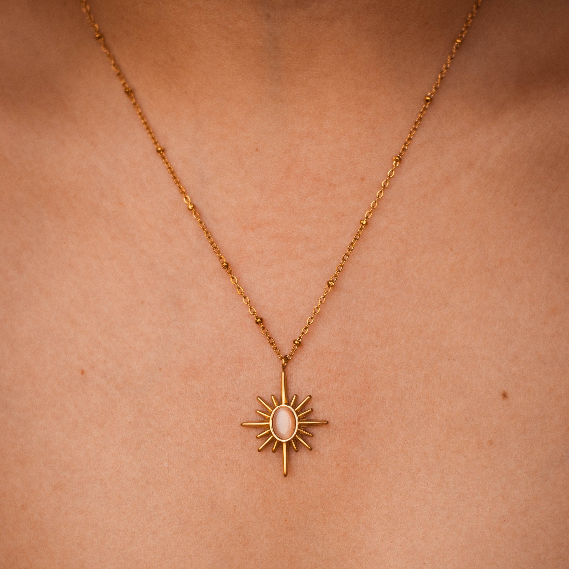 Embrace heavenly beauty with this Shineers Sunshine Necklace, plated in luxurious 18K gold. The intricate design, inspired by nature, adds a unique and elegant touch to any look. With an Anti-Tarnish finish, this necklace is made to last, ensuring a timeless shine.